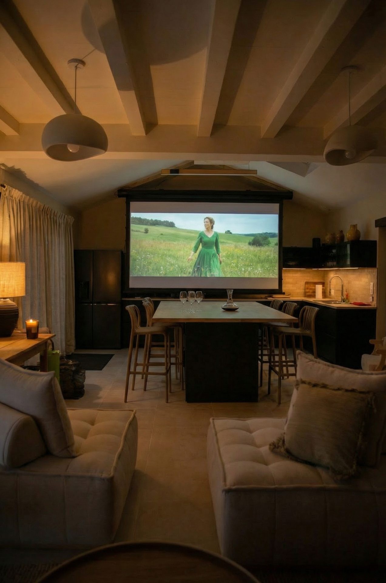 The Villa’s kitchen, identical to that of the Mas but more spacious, features a movable central island where 12 guests can sit together. The living room is furnished with modular contemporary pieces, perfect for spending time with friends by the fireplace or watching a film on the giant screen. On the ground floor, there is a first spacious bedroom with bathroom, WC and its own private terrace. Upstairs, the second bedroom also enjoys a fabulous view over the pool and the Gascony countryside. Premium bedding awaits for a deep and restful sleep.