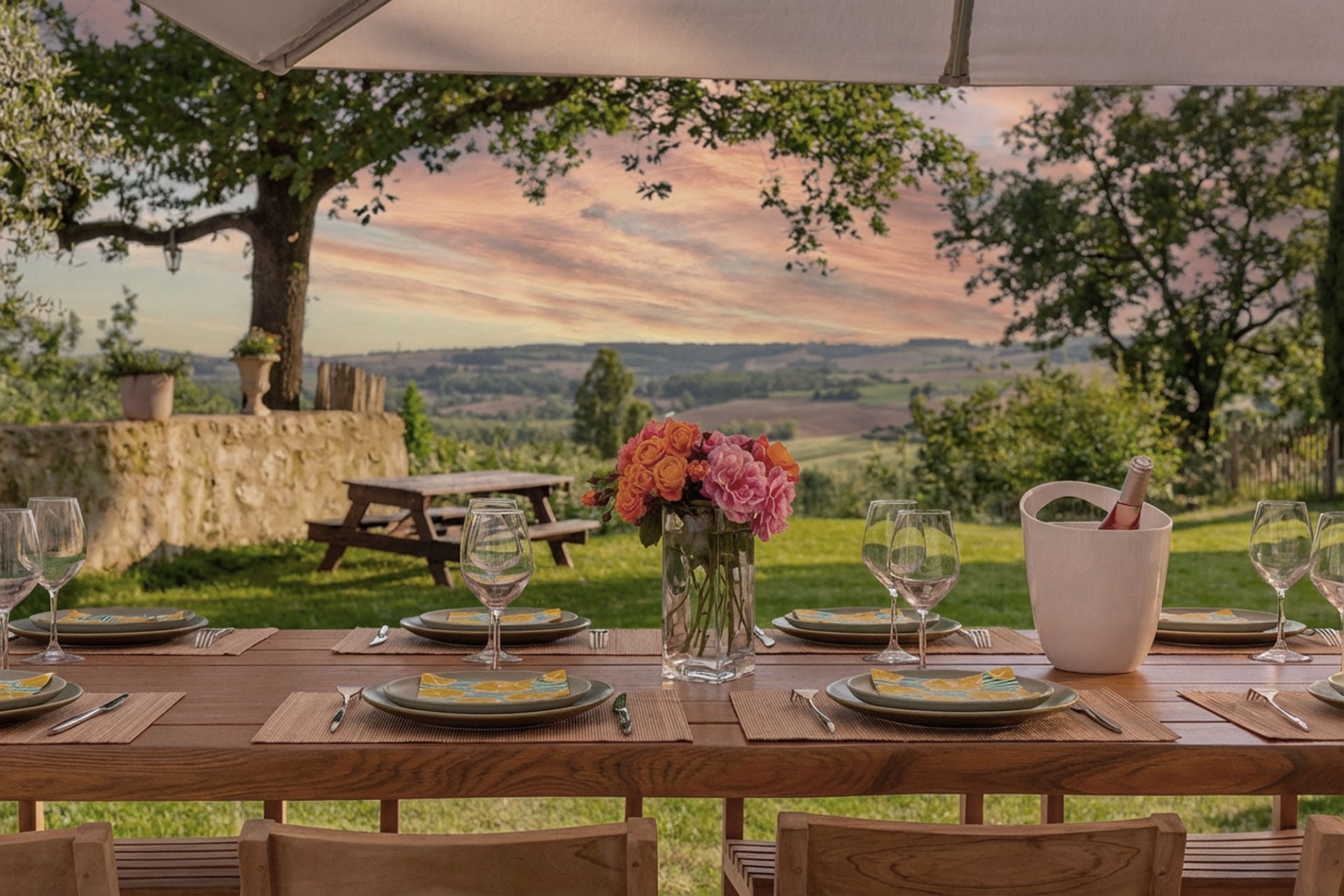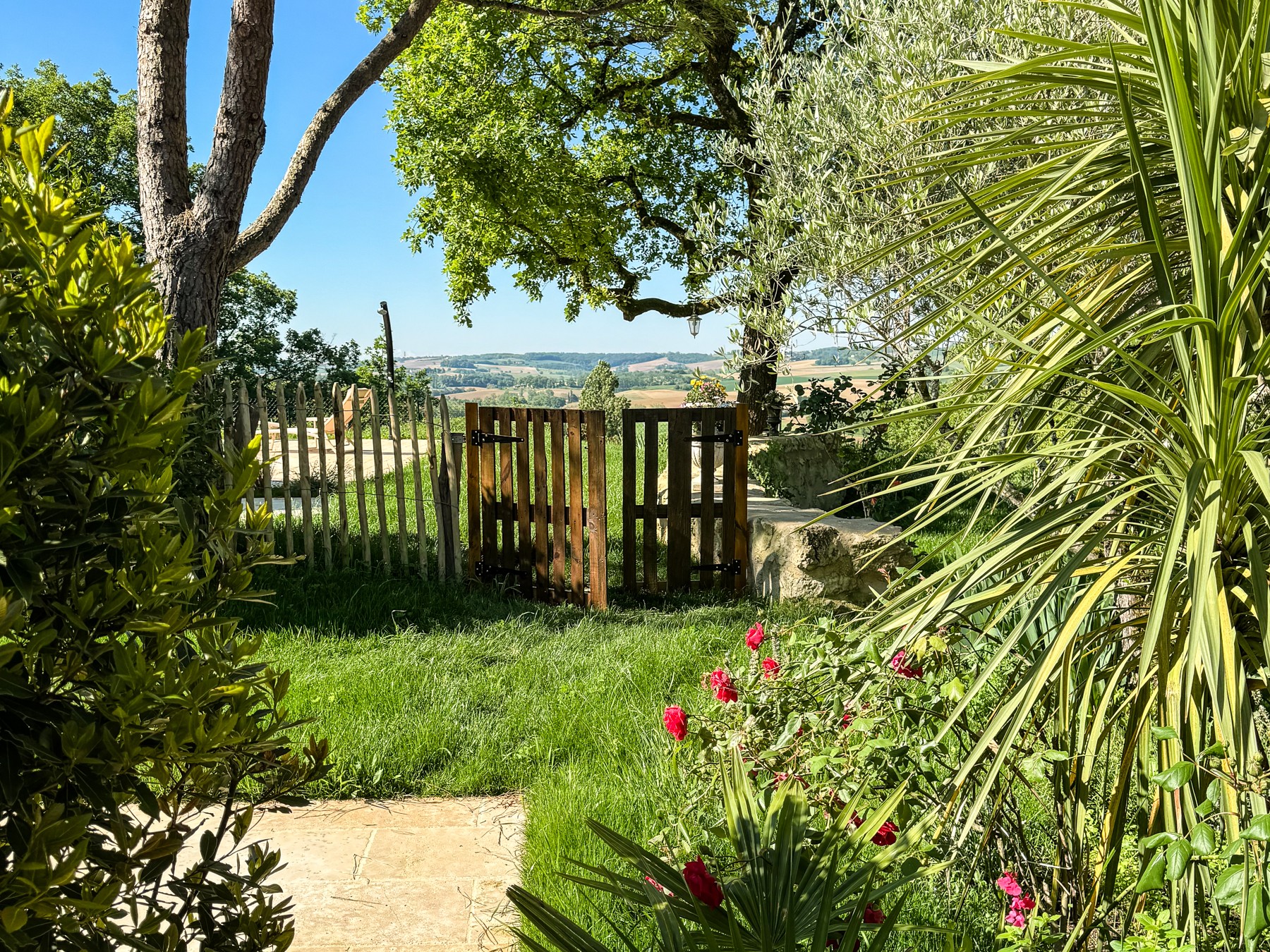 Bathrobes and slippers are graciously provided. Yoga mats are also available. Settle yourself on the lawn or one of the terraces, facing the Pyrenees, and breathe. A yoga teacher is available by reservation, should you wish.