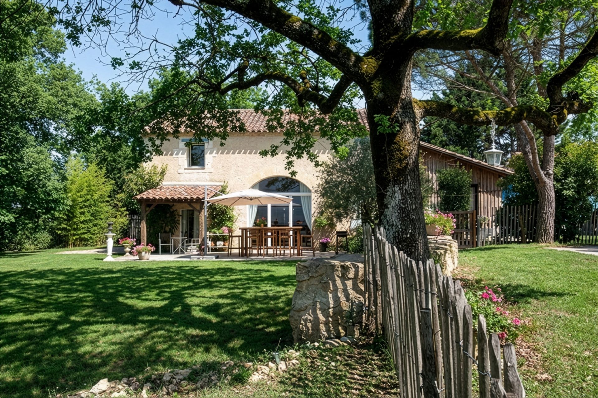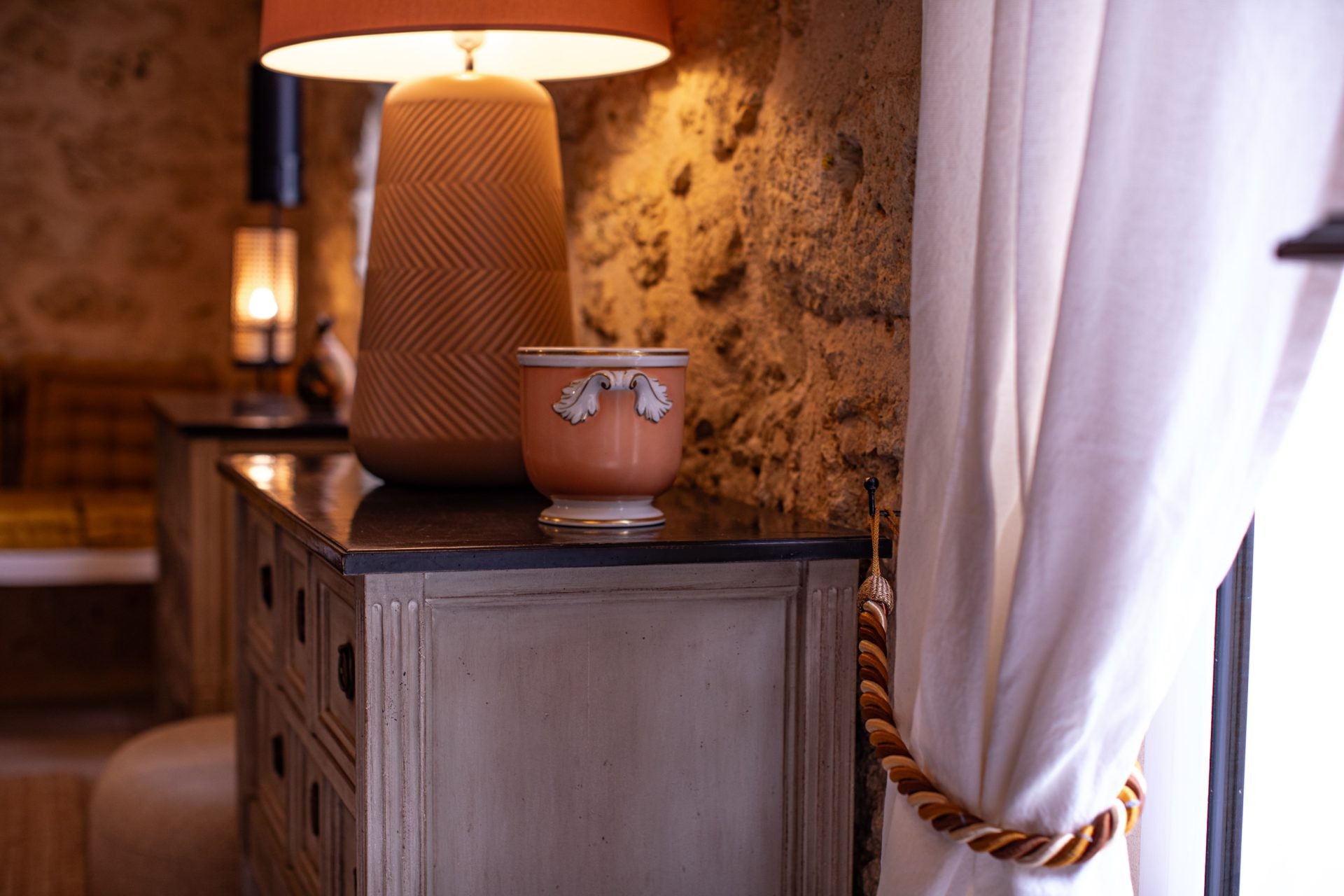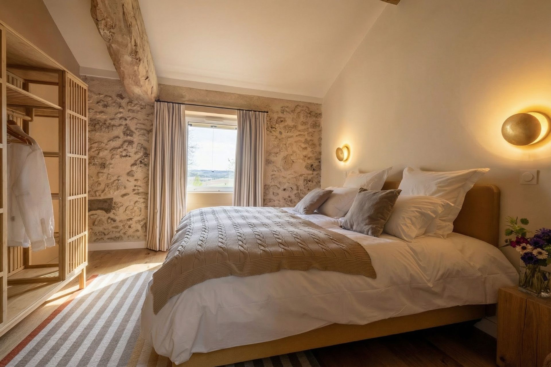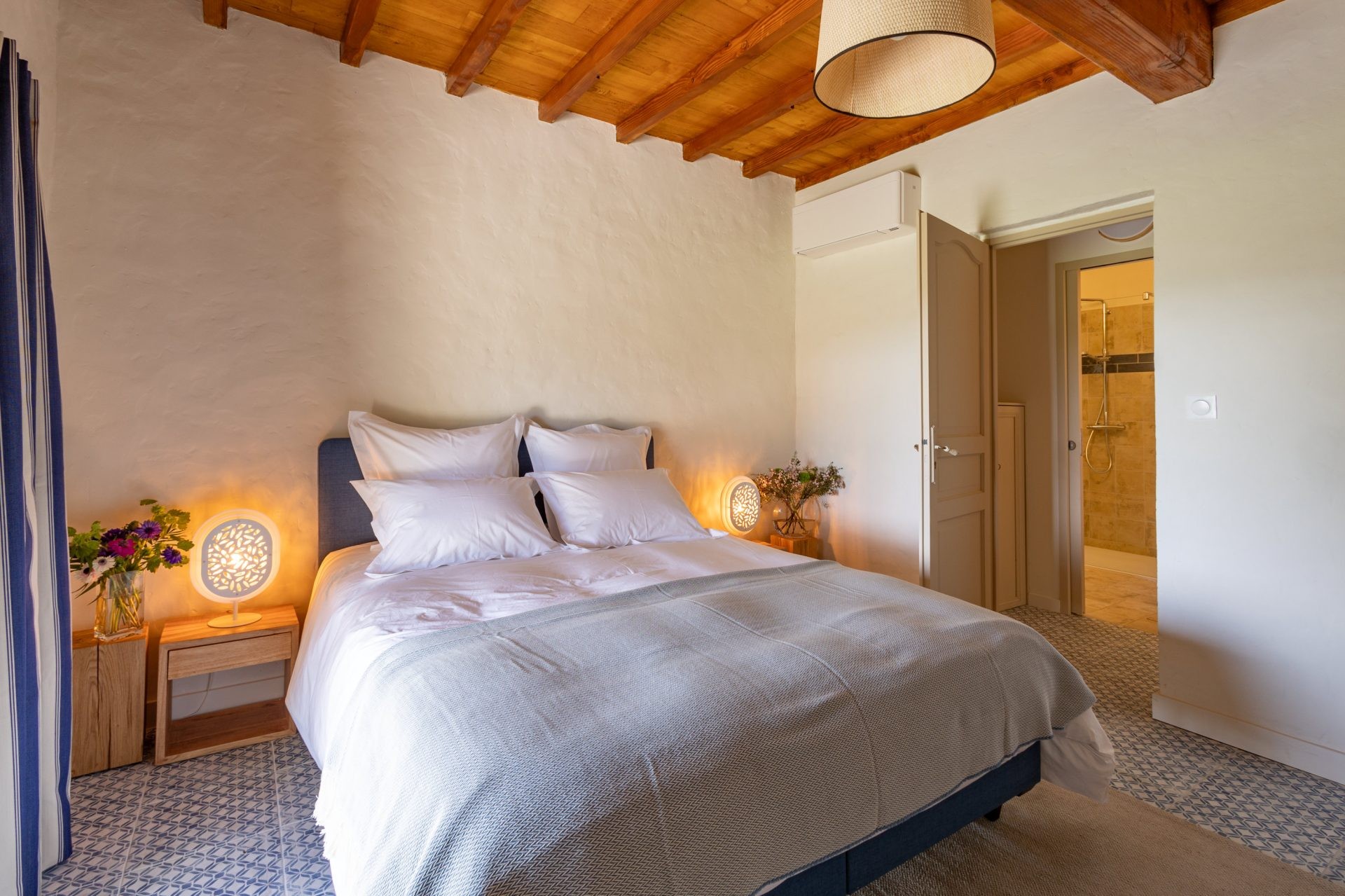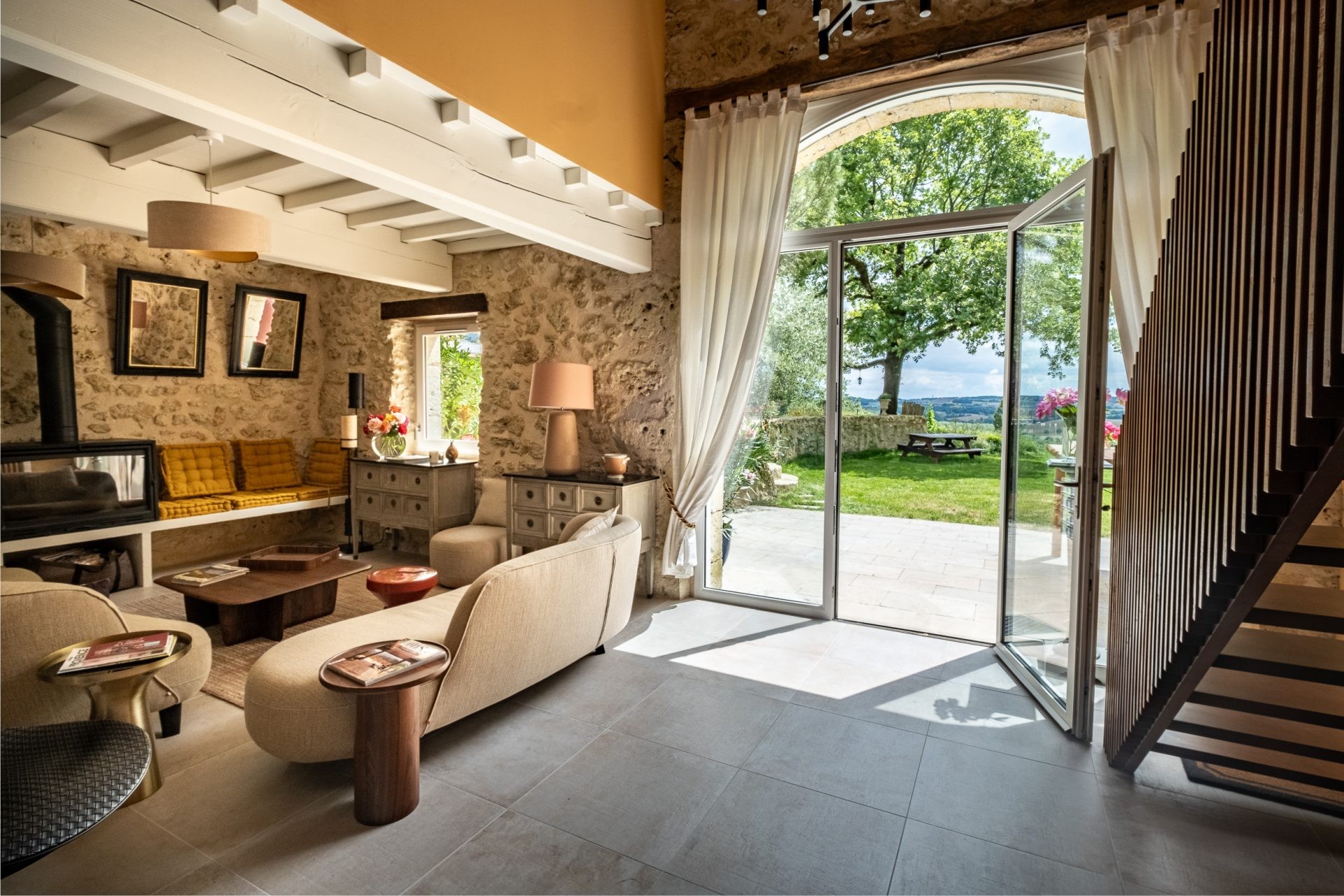 The Mas Gascon, its Villa, its Spa and its Pool form the heart of the estate. The whole combines contemporary design with the authenticity of old stone buildings, some dating back to 1776. The houses are tastefully furnished. Particular care is given to every detail to make your stay even more enjoyable. Numerous amenities are graciously available for your exclusive use: electric charging station, saltwater pool with panoramic views, pool bar, 4 terraces, a hidden spot for private conversations, hammock, sauna, hammam, massage and relaxation room… pétanque court, cinema room, telescope, plancha…