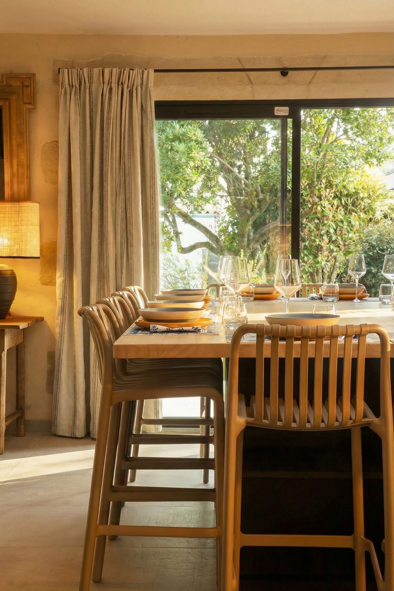 The cosy living room and fully equipped kitchen open onto a large bay window from which you can admire the exceptional and ever-changing view. The 4 bedrooms, understated and refined, each with a private bathroom and WC, one of them with a bathtub, all enjoy this same fabulous view. The premium bedding will restore the pleasure of long nights of sleep. You can enjoy lunch or dinner indoors or on the main terrace of the Mas overlooking the garden.