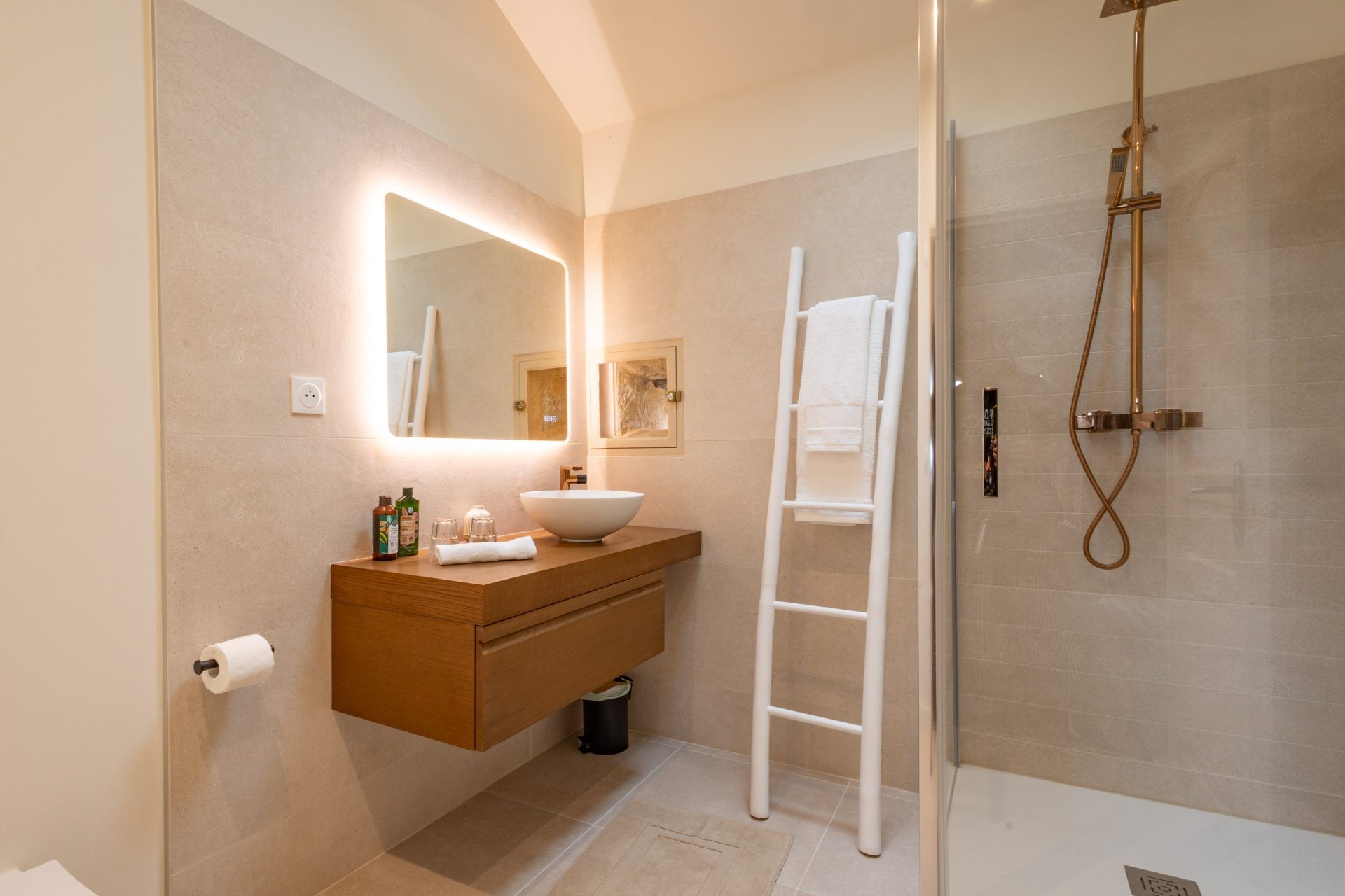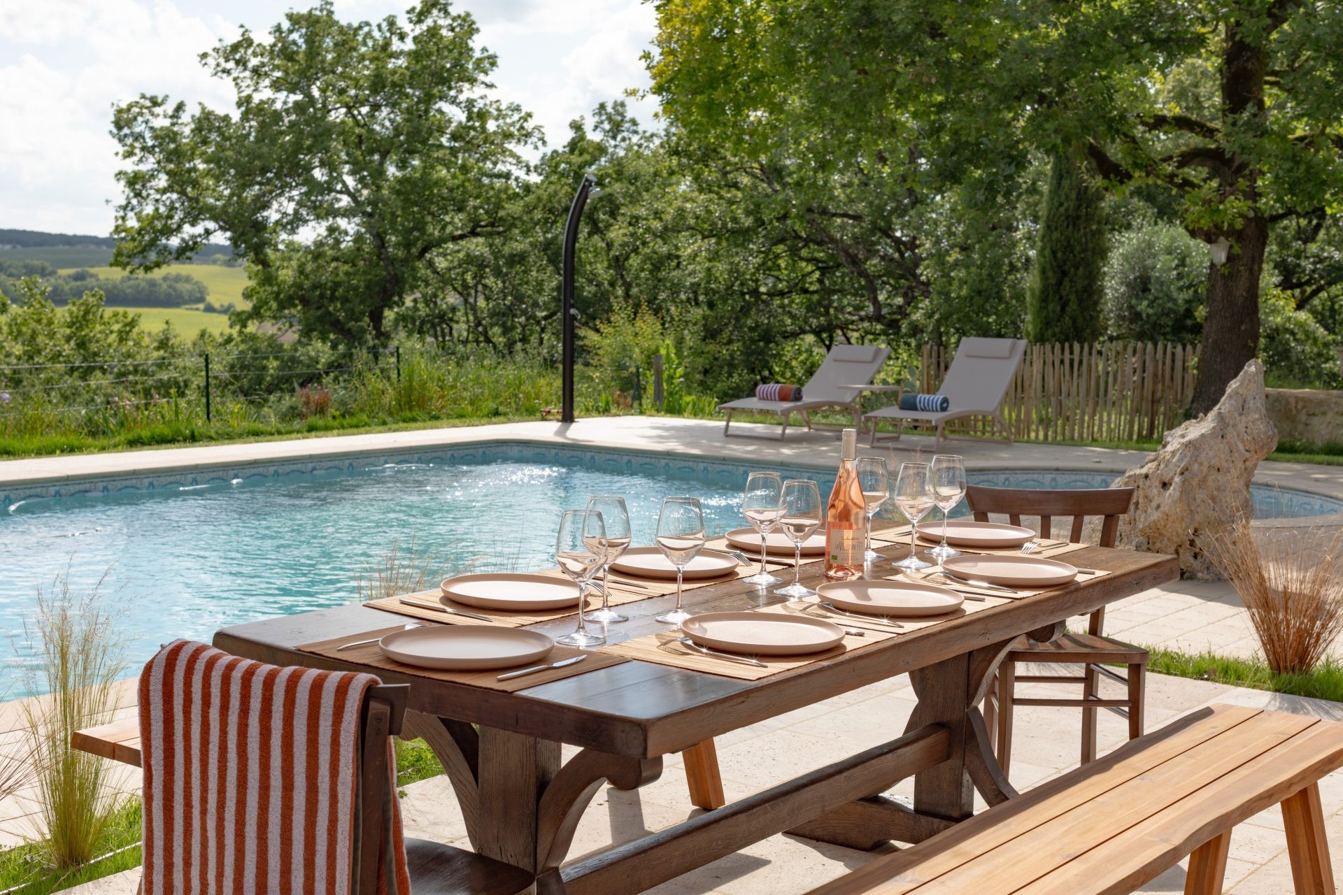 Bed linen, bath and pool towels, shampoo, shower gel, hand soap (Nuxe products), hairdryer, toilet paper and paper towels are also graciously provided, not to mention firewood for winter or a generous tray of around twenty condiments and culinary herbs.